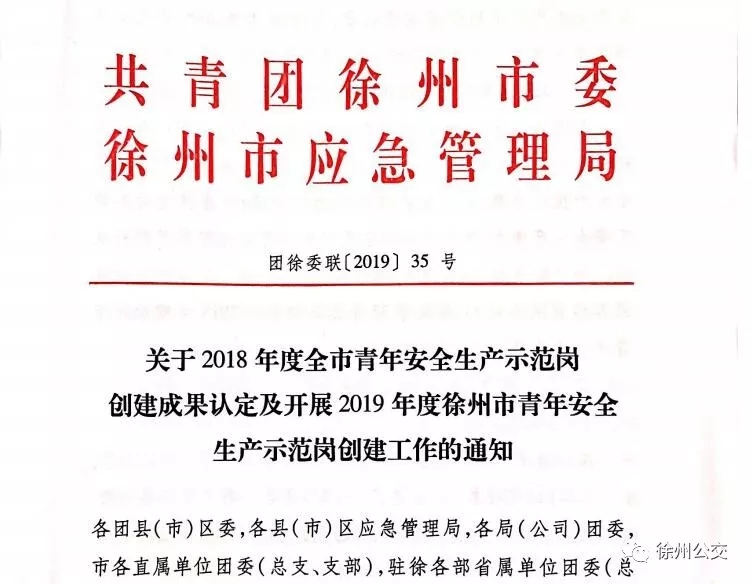 公司81路線榮獲徐州市 “青年安全生產(chǎn)示范崗”榮譽稱號