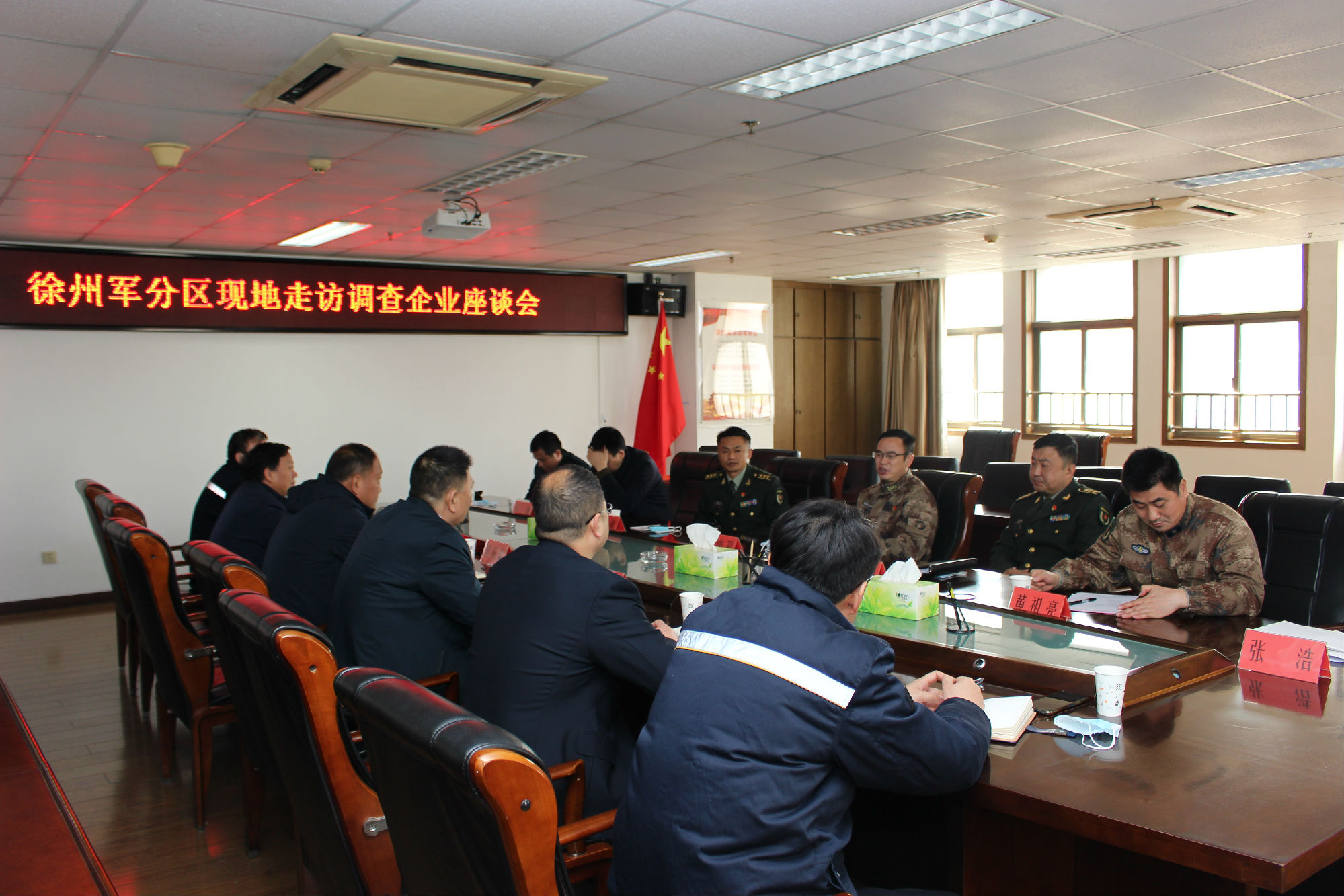 2月22日上午,徐州市軍分區(qū)政委李中雙,泉山區(qū)政府副區(qū)長王龍,泉山區(qū)人武部部長趙超,政委杜法祥,參謀黃祖亮、參謀張學(xué)儒一行到集團走訪座談。集團總經(jīng)理馮陸陸,常務(wù)副總經(jīng)理蔣成彪,副總經(jīng)理丁玉華,紀委書記、工會主席袁夫松參加會議。