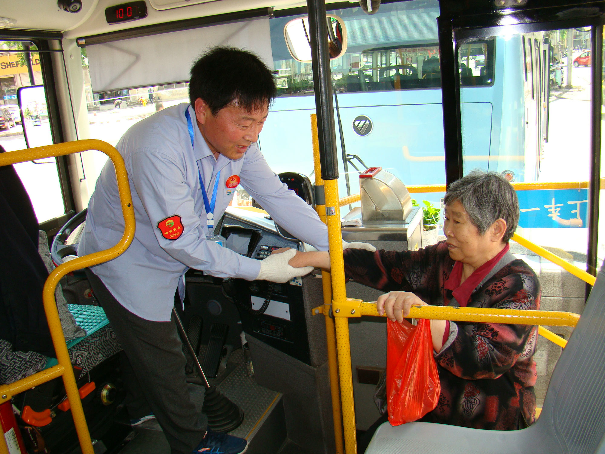 14路線由惠民小區(qū)開往火車西站,為無人售票車,全程19.5公里,途經汽車南站、七里溝農貿市場、彭城路、市一院等27個站點,現(xiàn)有車輛22臺,駕駛員30名,日運營班次90余班,運營時間間隔6-8分鐘一班,擔負著我市云龍區(qū)惠民小區(qū)4.5萬人的出行任務,而這條線路與眾不同之處在于,該線路針對老年人早晨出來買菜、送孩子上學等特點,在老年人出行高峰時段特意調整運營時間為6分鐘一班,方便老年人出行;14路線畢竟老年人太多,而公交車上老年人出現(xiàn)意外的幾率也很大,但全車工作人員認準了目標,齊心協(xié)力把公交這個尊老敬老窗口擦得更亮。