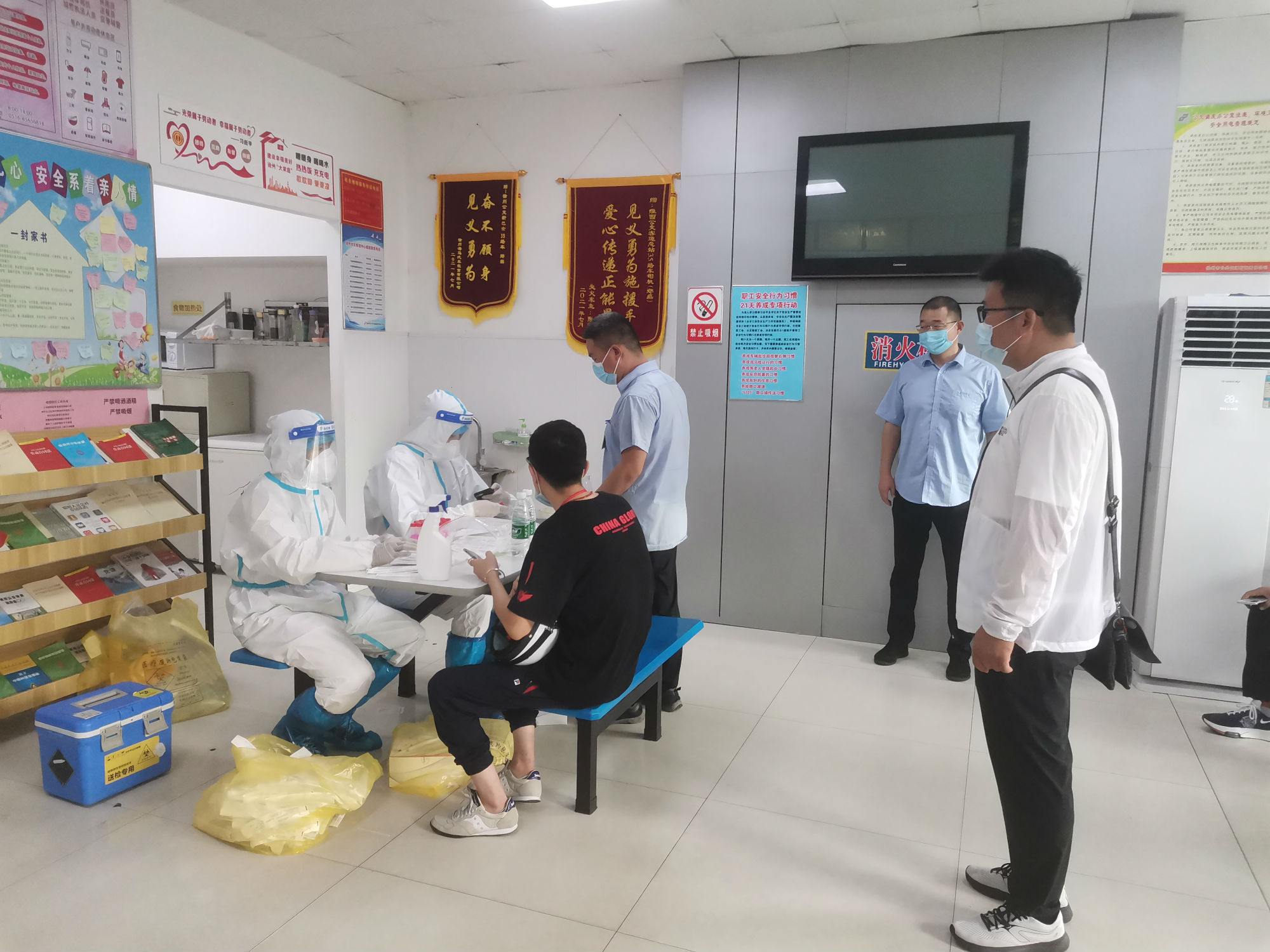核酸檢測期間,新巴士公司各級(jí)管理人員做好后勤保障工作,經(jīng)過亮碼認(rèn)證、衛(wèi)生消毒、信息核對(duì)等程序后,職工才被獲準(zhǔn)進(jìn)入核酸采集室。同時(shí),公司將空間較大的淮西客運(yùn)站調(diào)度室作為采集點(diǎn),并安排專職人員維持現(xiàn)場秩序。