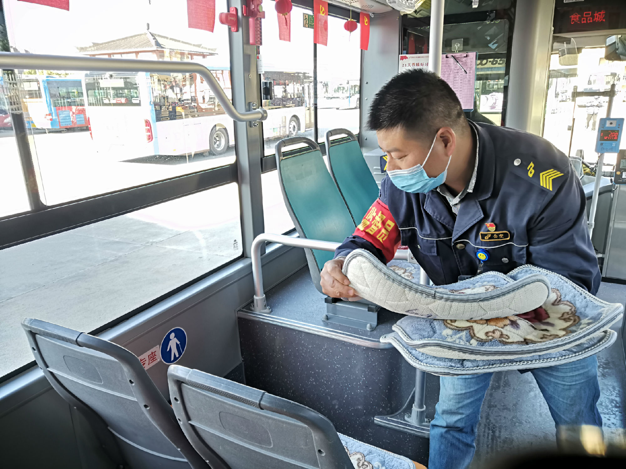 這件事對(duì)劉艷軍觸動(dòng)很深,于是便萌生了買坐墊的念頭。于是,他購(gòu)買了33個(gè)棉坐墊,鋪在了座椅上。