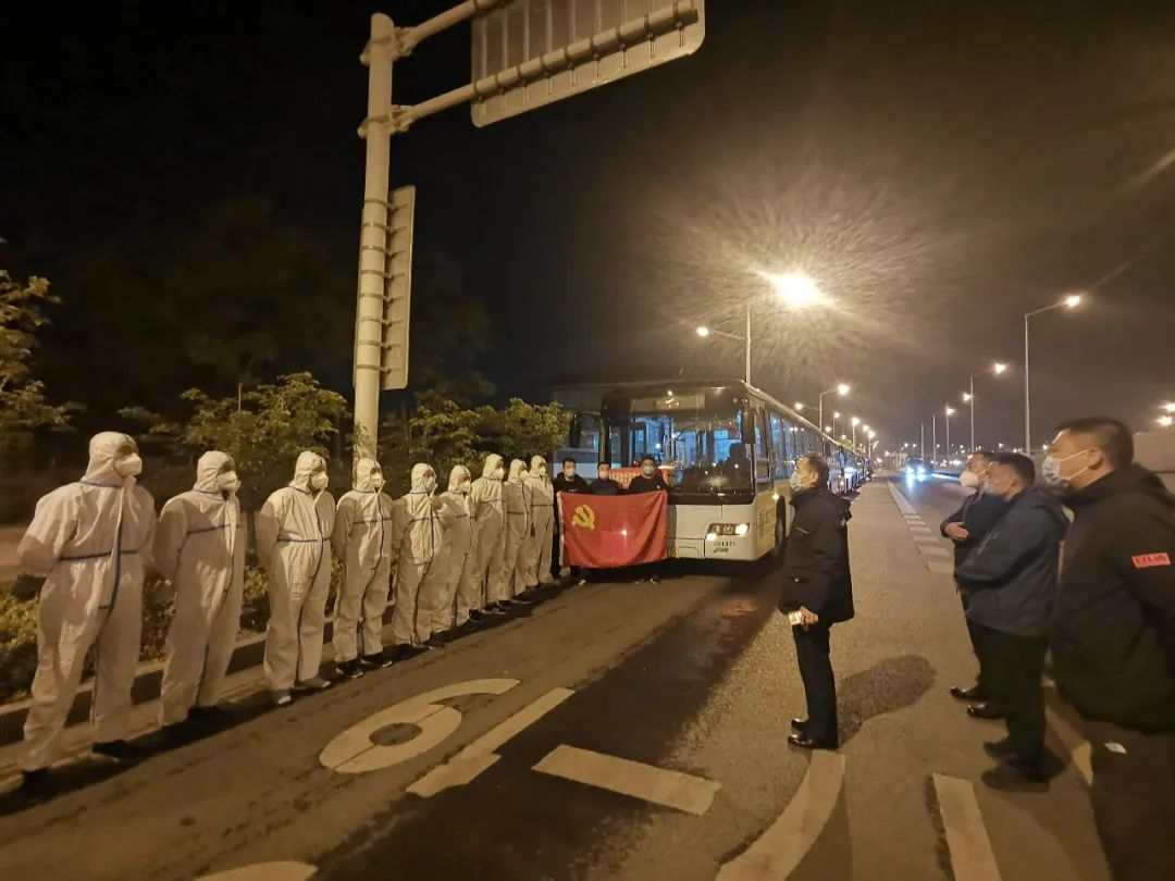 4月22日1:10分集結(jié)完畢。出行前,交控公交集團黨委書記、董事長高守江來到隊員們中間,滿懷激情地激勵大家:交控公交要承擔起國企責任,堅決服從全市疫情大局,全力支持睢寧疫情防控工作。大家要團結(jié)一心,到崗以后要服從大局、聽從指揮、遵守紀律、忠于職守,要切實加強安全防護。大家處在疫情防控的最前沿、第一線,既要發(fā)揚越是艱險越向前的斗爭精神,也要強化自我防護意識,嚴格按規(guī)程開展工作,全體公交人都期盼你們早日凱旋歸來、平安歸來。