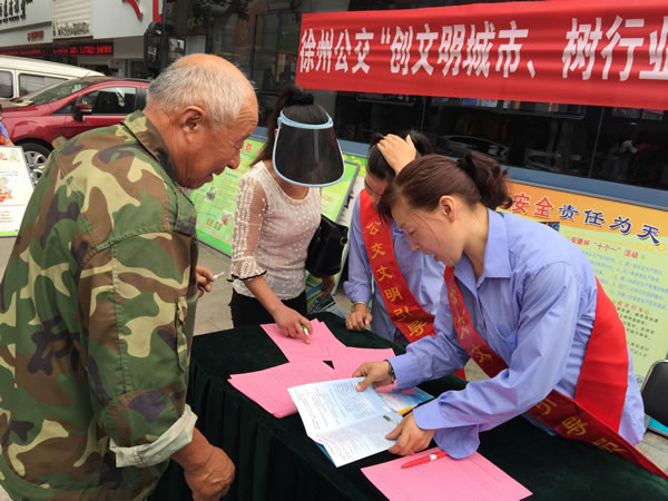 6月16日上午,賈汪公司組織駕乘人員身披綬帶,在賈汪區(qū)中心步行街開展“創(chuàng)文明城市,樹行業(yè)新風”便民咨詢活動,發(fā)放《徐州公交乘車指南》,征求市民建議和意見,受到廣大市民好評。?xml:namespace>