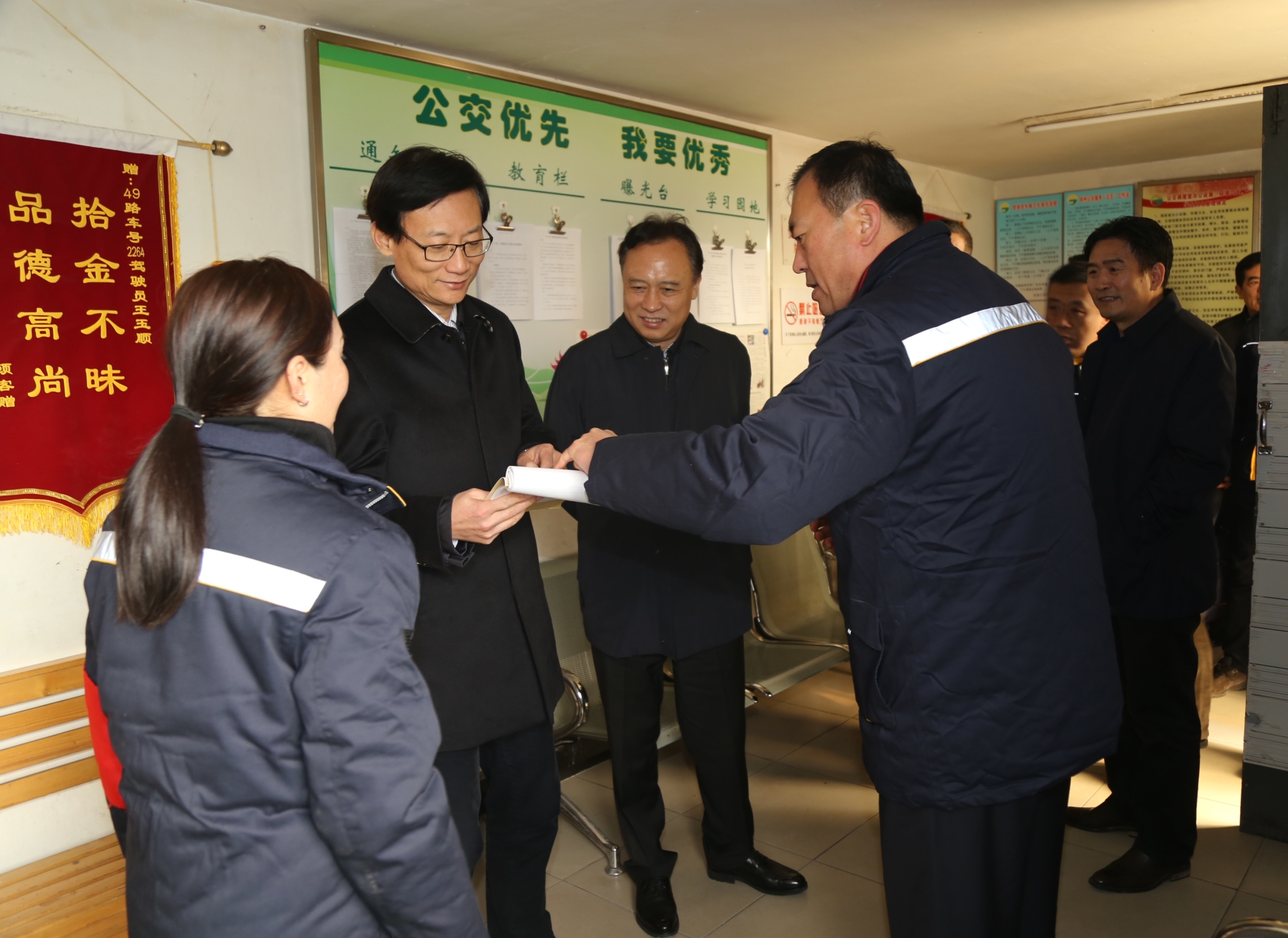 趙立群首先來到京徐公司76路、49路調(diào)度室,察看了調(diào)度室的工作環(huán)境和保暖措施,詳細詢問了駕駛員生產(chǎn)生活、用餐休息等情況。隨后,來到二級智能調(diào)度平臺,認真聽取了智能調(diào)度系統(tǒng)建設(shè)及運行情況,平臺工作人員現(xiàn)場演示了系統(tǒng)中運營調(diào)度、車輛定位、安全提示、實時監(jiān)控等操作,使其更直觀的了解智能調(diào)度系統(tǒng)的性能。最后,趙立群等一行又視察了保養(yǎng)車間,與修理人員進行了親切的交談。